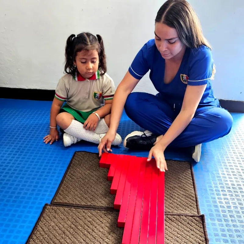 En nuestro preescolar nuestros ambientes están dotados de materiales diseñados por la observación clínica de la Dra. María Montessori y utilizados por las escuelas más prestigiosas del mundo. Estos son instrumentos de precisión con los que el niño interactúa día a día que lo llevan a la construcción de su ser y a una arquitectura cerebral elevada.